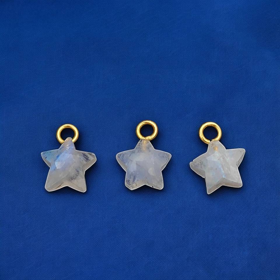 Labradorite Star Charms Briolette Cut 10mm Star Gold Plated 925 Sterling Silver Pendant Jewelry Making Labradorite Star Charms