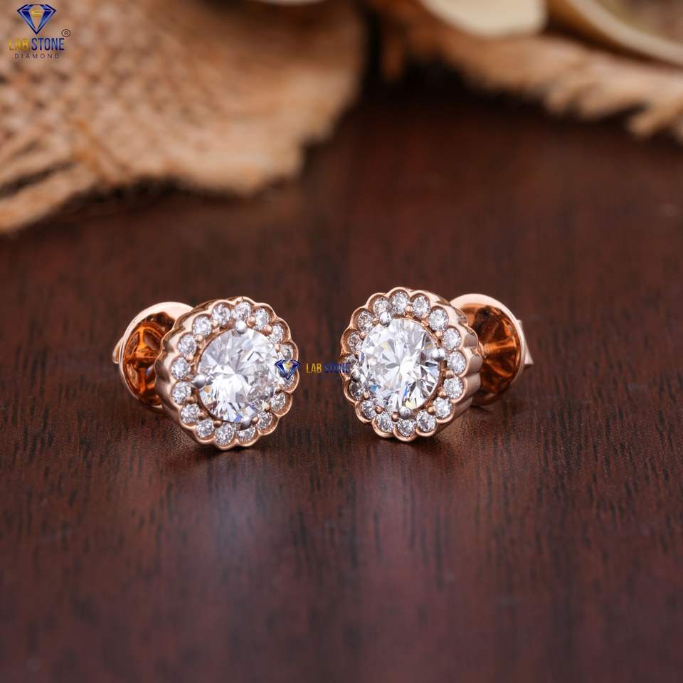 ต่างหูเพชรเม็ดกลมสีโรสโกลด์1.71 TDW สไตล์คลาสสิก EF-VS ได้รับการรับรองจาก COLOUR IGI สีทอง18K & 14K