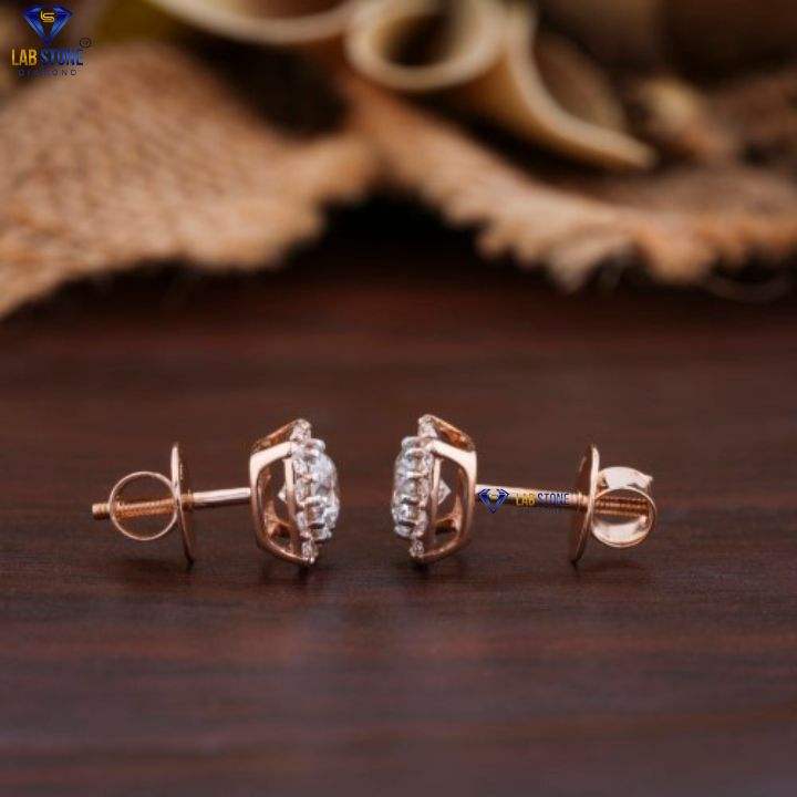 Labstone ต่างหูเพชรทรงกลมตัดอย่างยอดเยี่ยม1.81 TDW สีโรสโกลด์ EF-VS สีทอง18K เสน่ห์ของขวัญที่สมบูรณ์แบบสำหรับเธอ