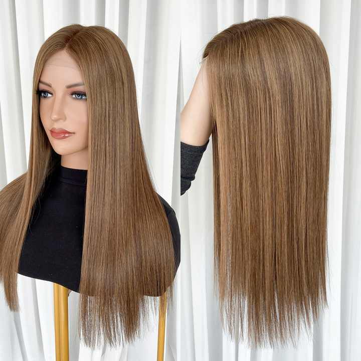 วิกผมมนุษย์แบบลูกไม้ด้านหน้า สีน้ำตาลกลาง # วิกผมลูกไม้แบบ SBB