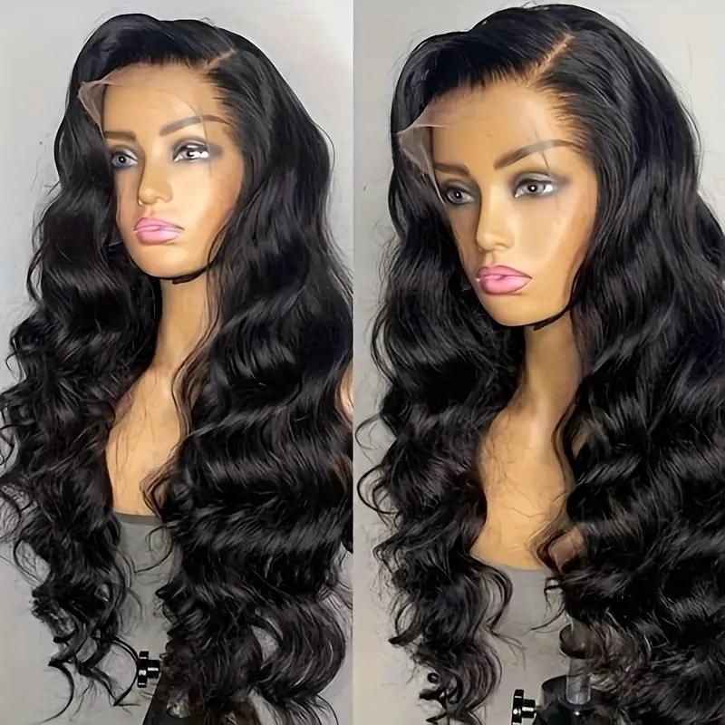 วิกผมลูกไม้ด้านหน้าสำหรับผู้หญิงผมหยิกยาวเป็นลอนใหญ่ตรงกลางเป็นธรรมชาติ
