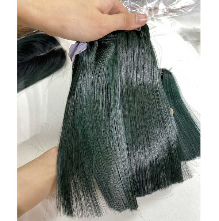 ช่อผมด้านหน้าแบบมีลูกไม้ผมมนุษย์สองชั้นเรียงเหมือนผมมนุษย์ผมตรงทรงกระดูกเวียดนามสีเขียว