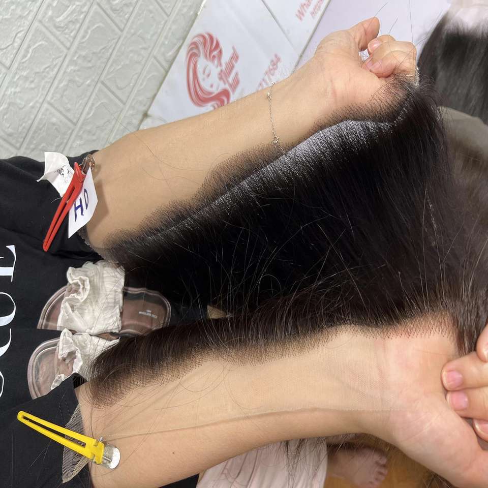 ลูกไม้ HD กระดูกหน้าผากตรงลูกไม้สีธรรมชาติดิบเวียดนามมนุษย์ต่อขนด้านหน้าสําหรับผู้หญิงผิวดํา