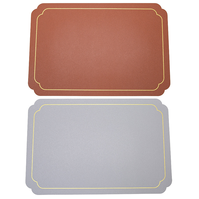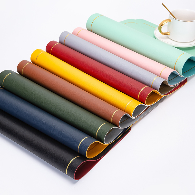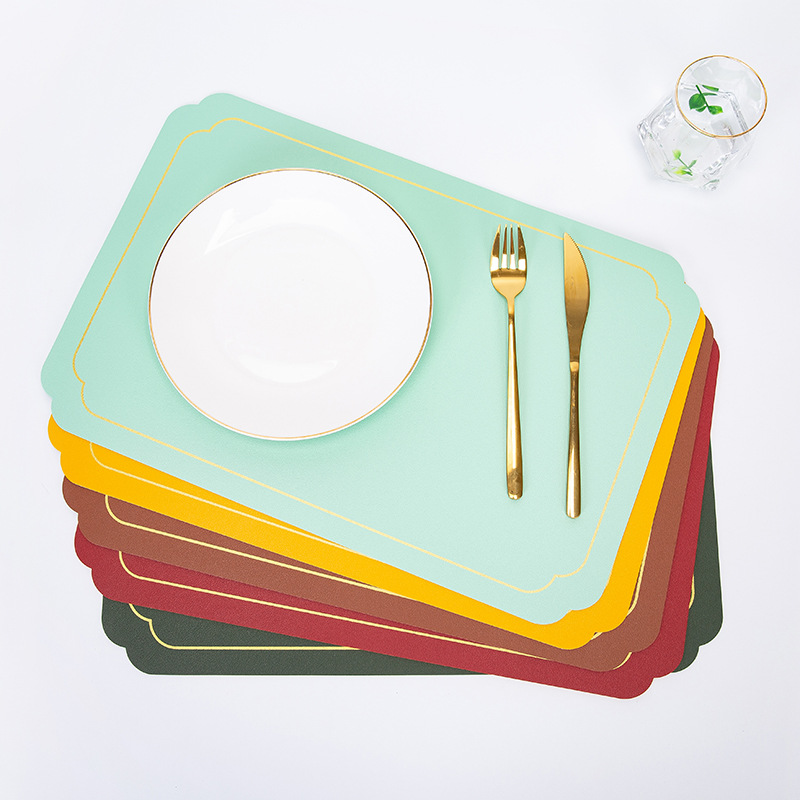 แผ่นรองจานหนังลายลูกไม้ เป็นมิตรกับสิ่งแวดล้อม ปรับแต่งได้ สำหรับอาหารตะวันตก โรงแรม บ้าน โต๊ะอาหาร แผ่นรองกันความร้อน PU กันน้ำ