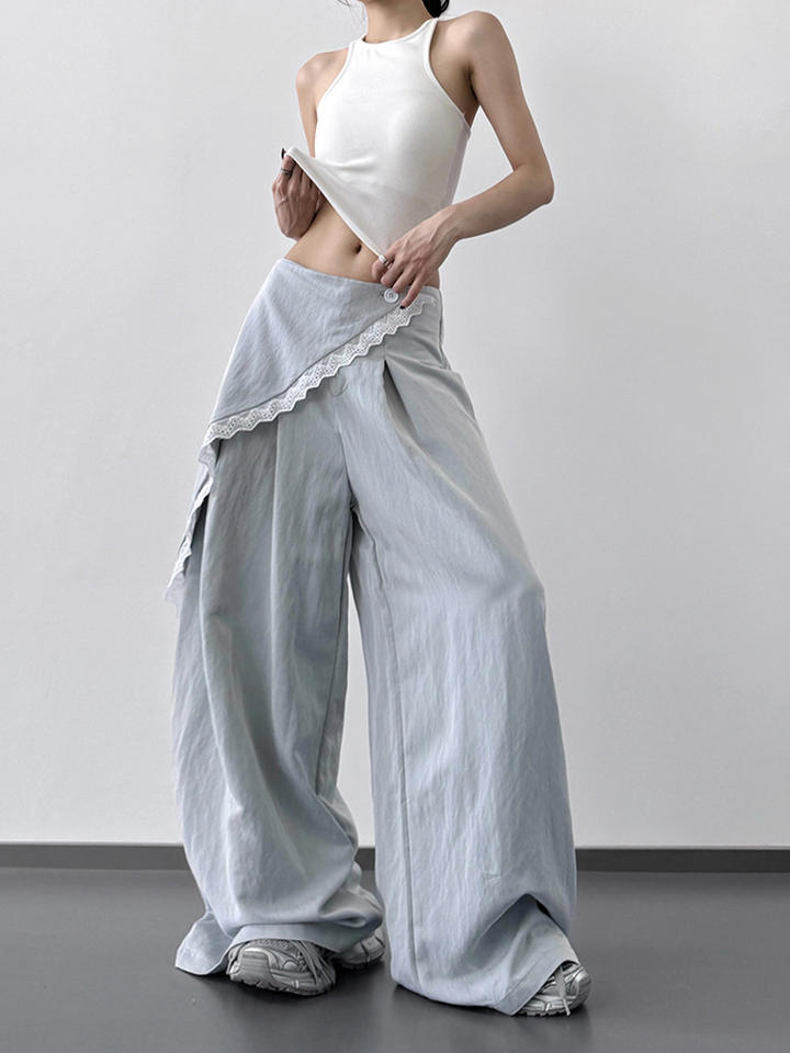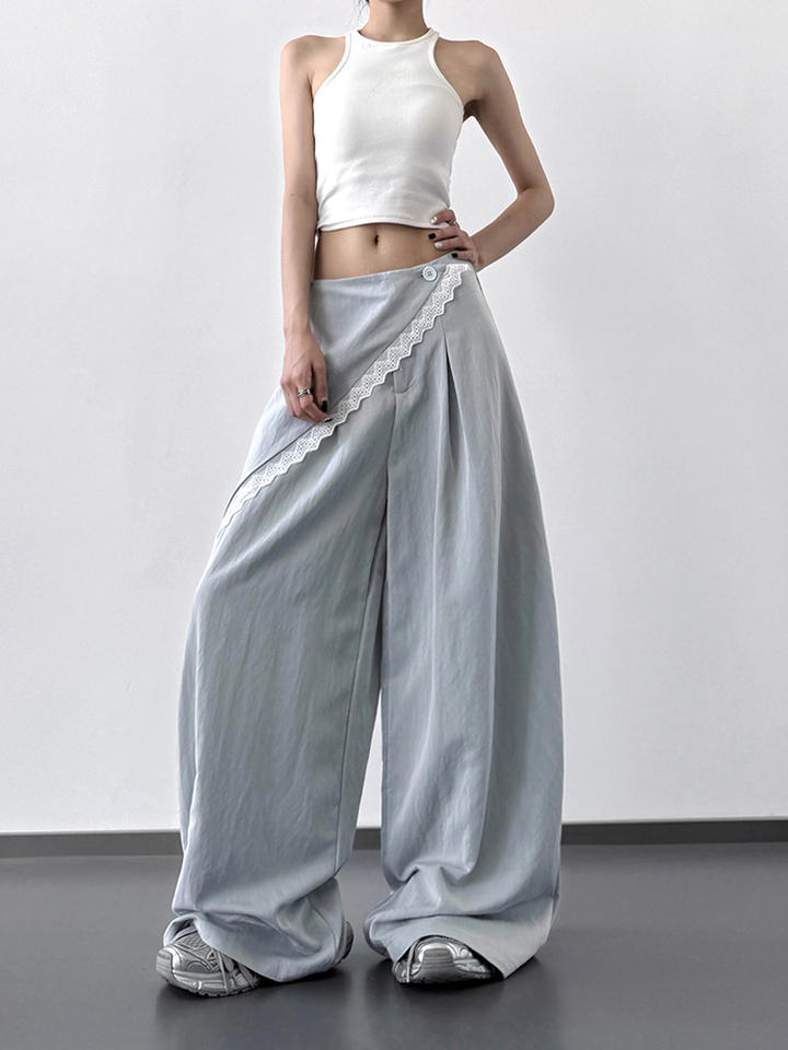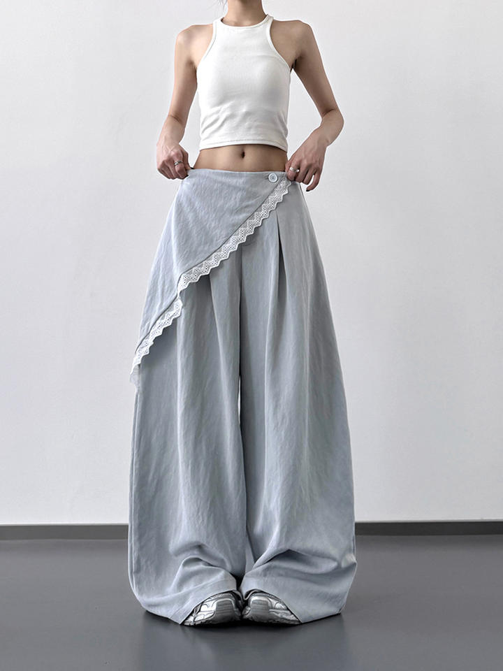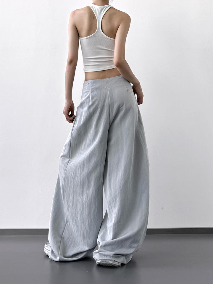 กางเกงขากว้างแฟชั่นสไตล์เกาหลีสำหรับผู้หญิงกางเกงเอวสูงทรงหลวมลำลองใหม่สำหรับฤดูร้อน