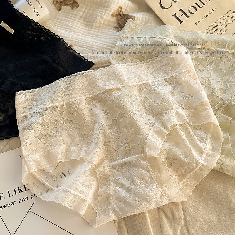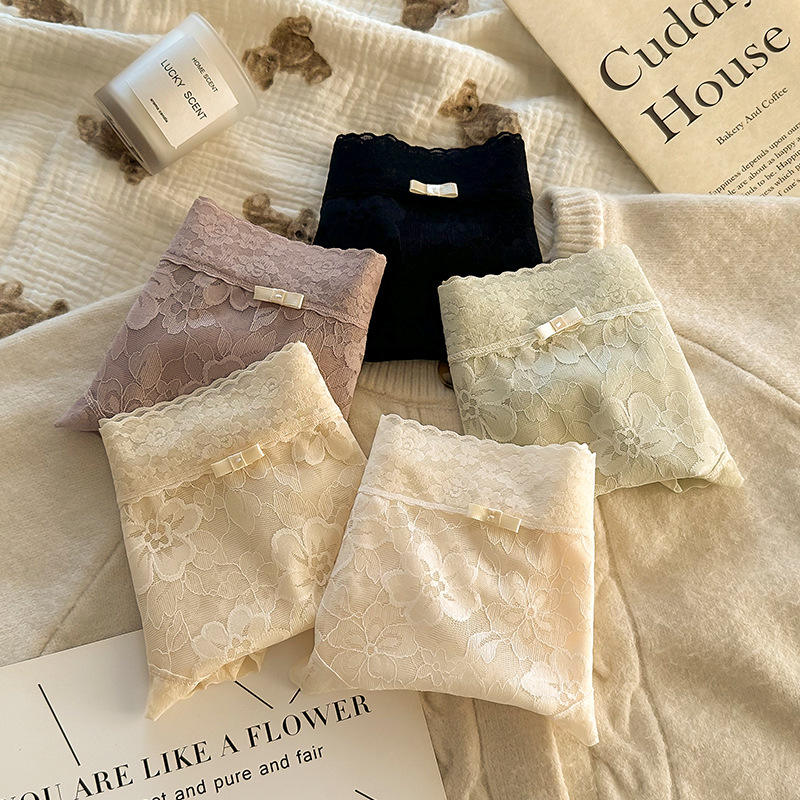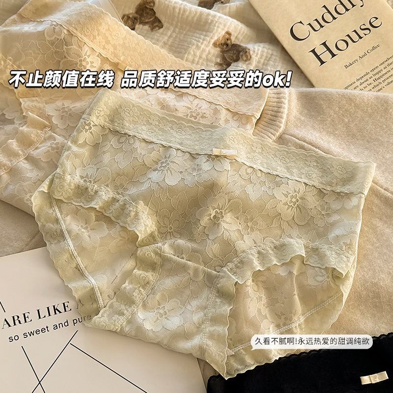 กางเกงในลูกไม้แบบฮิปสเตอร์สำหรับผู้หญิง เอวกลาง เนื้อผ้านุ่มเป็นมิตรกับผิว ยืดหยุ่นสูง 7A ผ้าฝ้าย/ไนลอนถัก ป้องกันแบคทีเรีย
