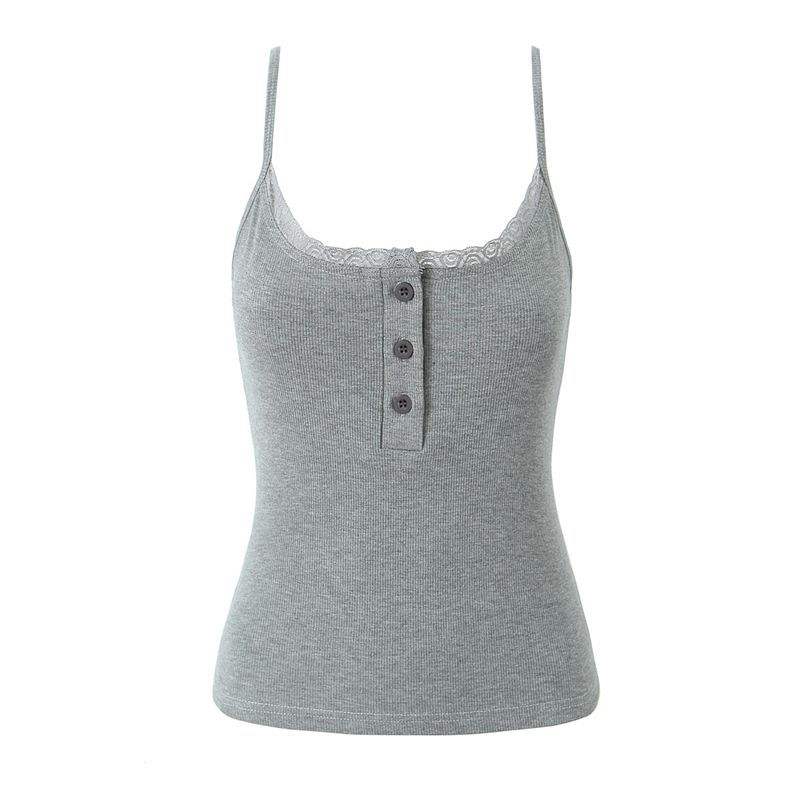 เสื้อกล้ามติดกระดุมแต่งลูกไม้ สีเทา ผ้าใยวิสโคส เสื้อกล้ามด้านในสำหรับผู้หญิง N9115
