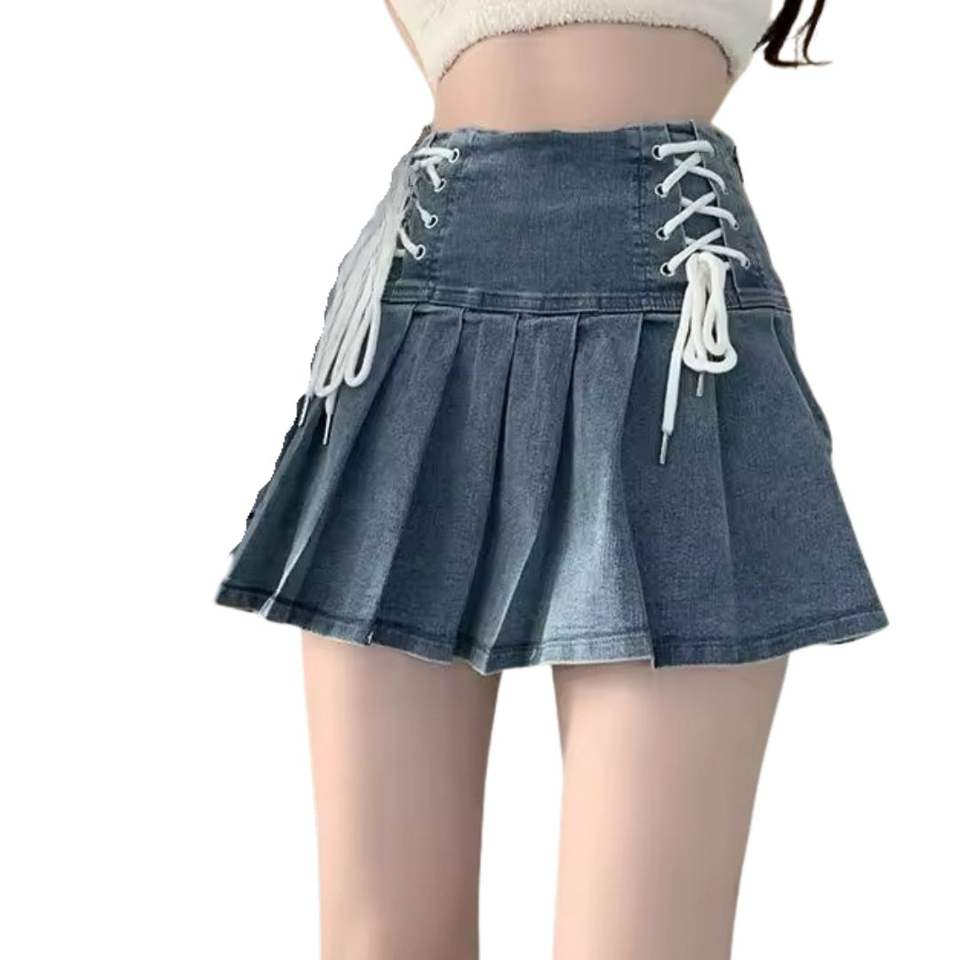 กระโปรงยีนส์สั้นทรงเอวสูงจีบระบายสำหรับผู้หญิง สั่งซื้อขั้นต่ำน้อย เหมาะสำหรับใส่ลำลองในฤดูร้อน แฟชั่นคุณภาพสูง