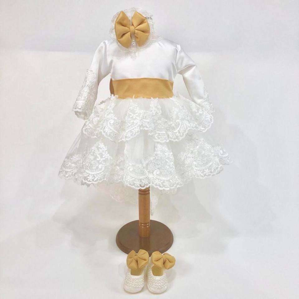 ชุดเดรสยาวลูกไม้สีขาวสำหรับเด็กผู้หญิงชุดปาร์ตี้และวันเกิด0-6เดือน6-12เดือน