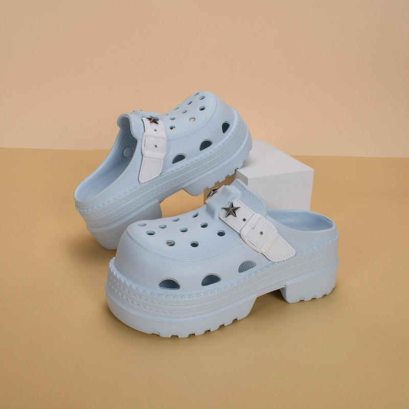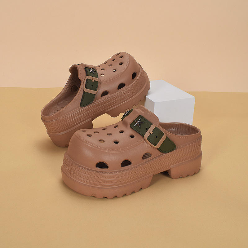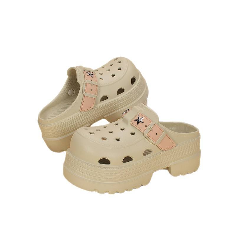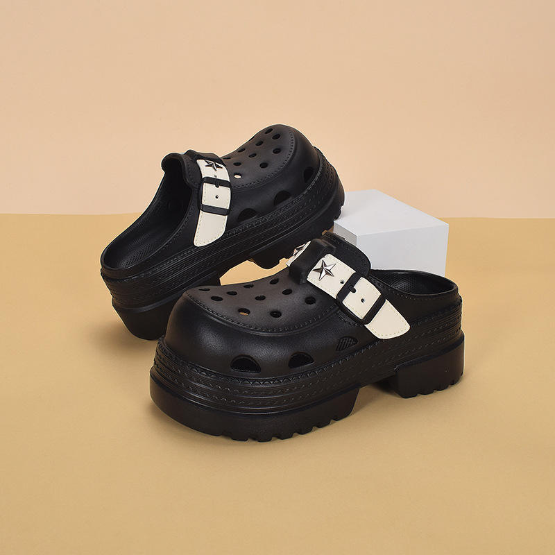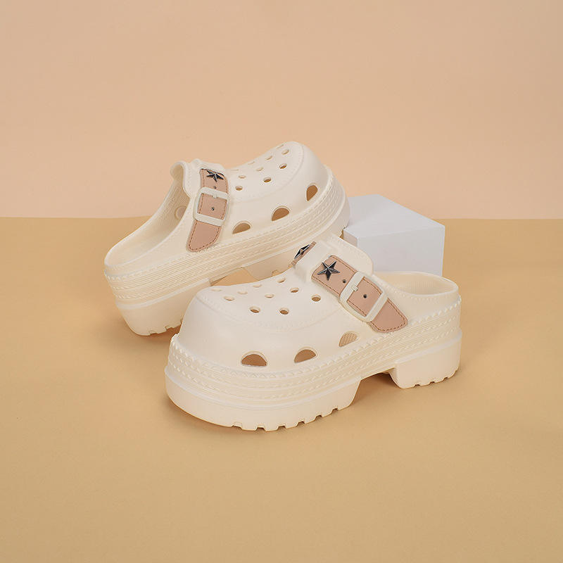 รองเท้าแตะผู้หญิงลูกไม้พื้นหนาระบายอากาศได้ดีกันลื่นสไตล์ Baotou นุ่ม3ซม. ส้นสบาย
