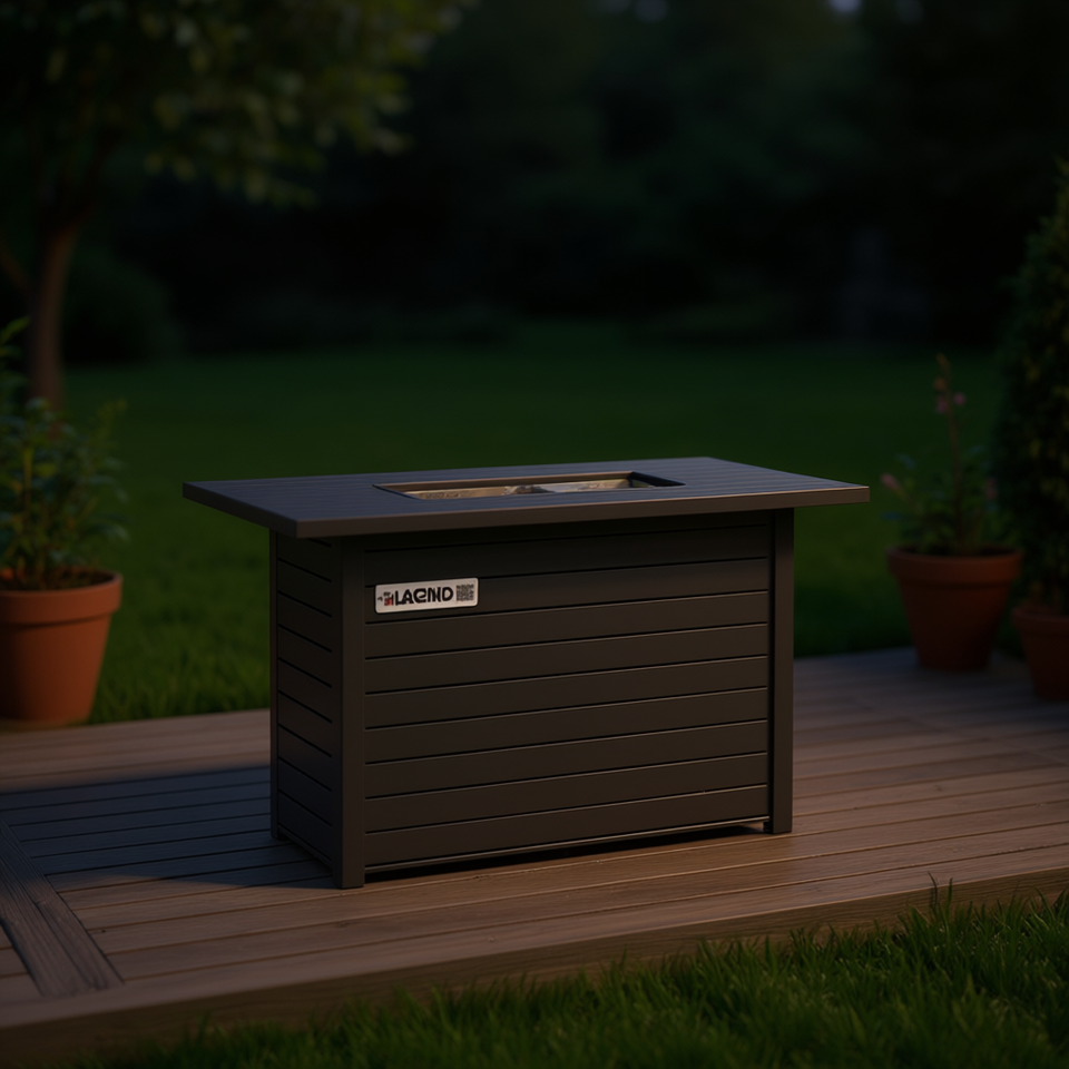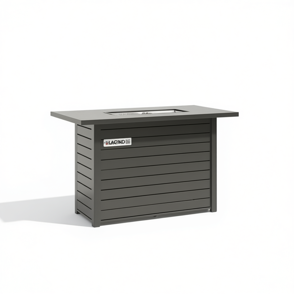 โต๊ะเตาไฟกลางแจ้ง Lacind ขนาด 25 นิ้ว สูง x 42 นิ้ว กว้าง สไตล์โมเดิร์น ทำจากสแตนเลส ใช้แก๊สโพรเพน ตั้งพื้นได้ ตกแต่งสวน สีดำเคลือบด้วยผง