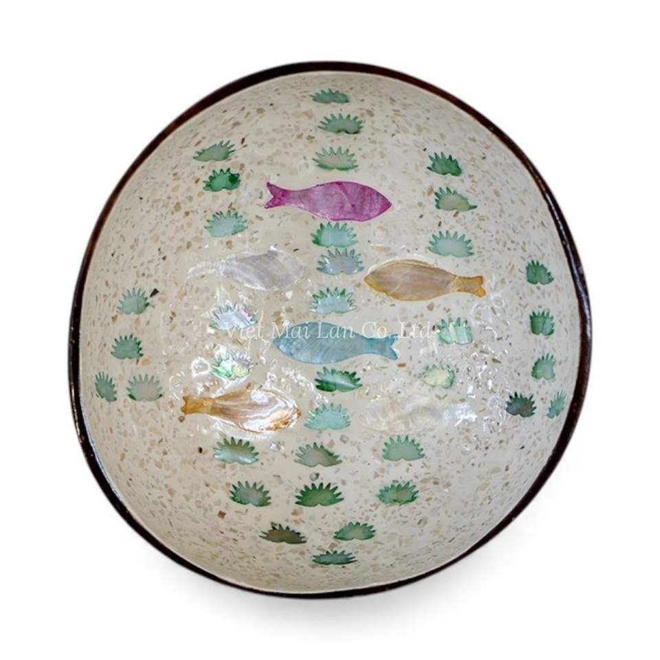 ชามมะพร้าวเคลือบแลคเกอร์ประดับเปลือกหอยมุก งานแฮนด์เมดจากเปลือกหอยธรรมชาติ เป็นมิตรกับสิ่งแวดล้อม สไตล์โบฮีเมียน ของตกแต่งบ้านสไตล์เวียดนาม ผลิตในเวียดนาม