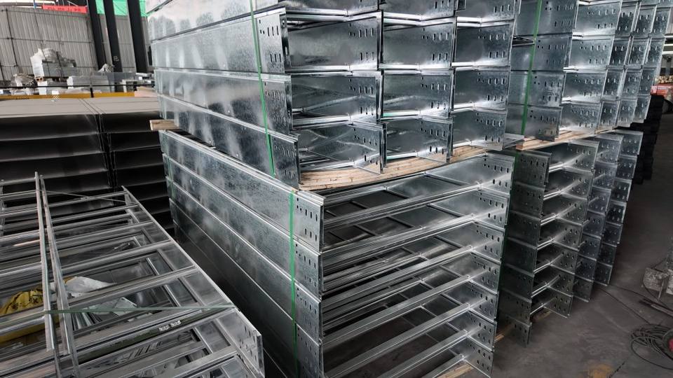 รางเคเบิลแบบบันไดเหล็กสำหรับภายนอกอาคาร รางเคเบิลแบบบันไดชุบกัลวาไนซ์แบบจุ่มร้อน
