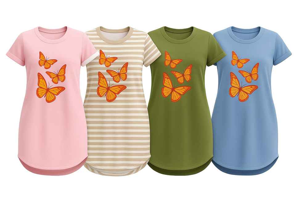 เสื้อยืดผ้าฝ้าย100% สำหรับผู้หญิงตัวยาวผ้าเทอร์รี่พิมพ์ลายผีเสื้อเสื้อถักสำหรับทุกฤดูกาลขายส่งจากบังคลาเทศ