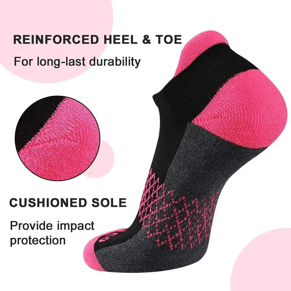 เซ็ตถุงเท้ารัดข้อเท้า6คู่สำหรับสตรีประกอบด้วยพื้นรองเท้าและแถบกันกระแทกที่ทำจากโพลีเอสเตอร์97% และสแปนเด็กซ์3%