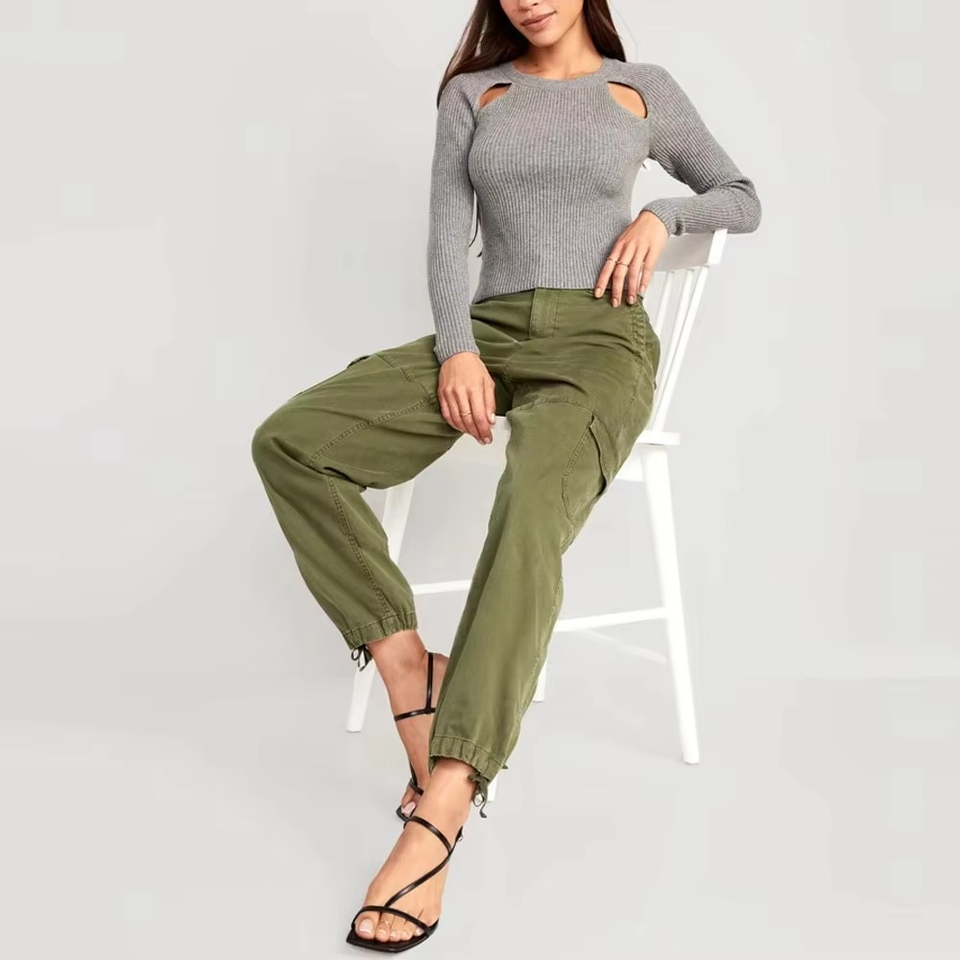 กางเกงยีนส์ผู้หญิงทรงหลวม เอวสูง แฟชั่น 6 กระเป๋า สไตล์สตรีท โอเวอร์ไซส์ กางเกงคาร์โก้ผู้หญิง