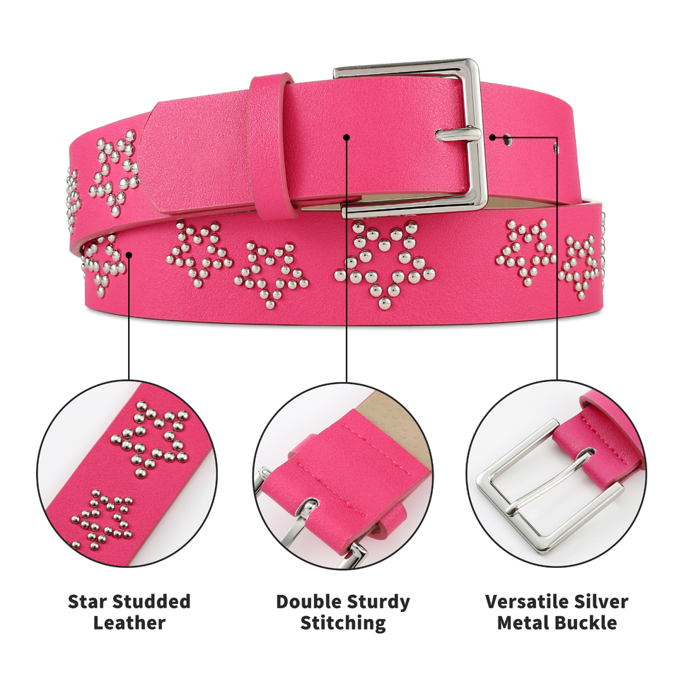 เข็มขัดแฟชั่นหมุดย้ำรูปดาวแบบวินเทจสำหรับผู้หญิงเข็มขัดหนัง PU ดีไซน์ออกแบบได้ตามต้องการ