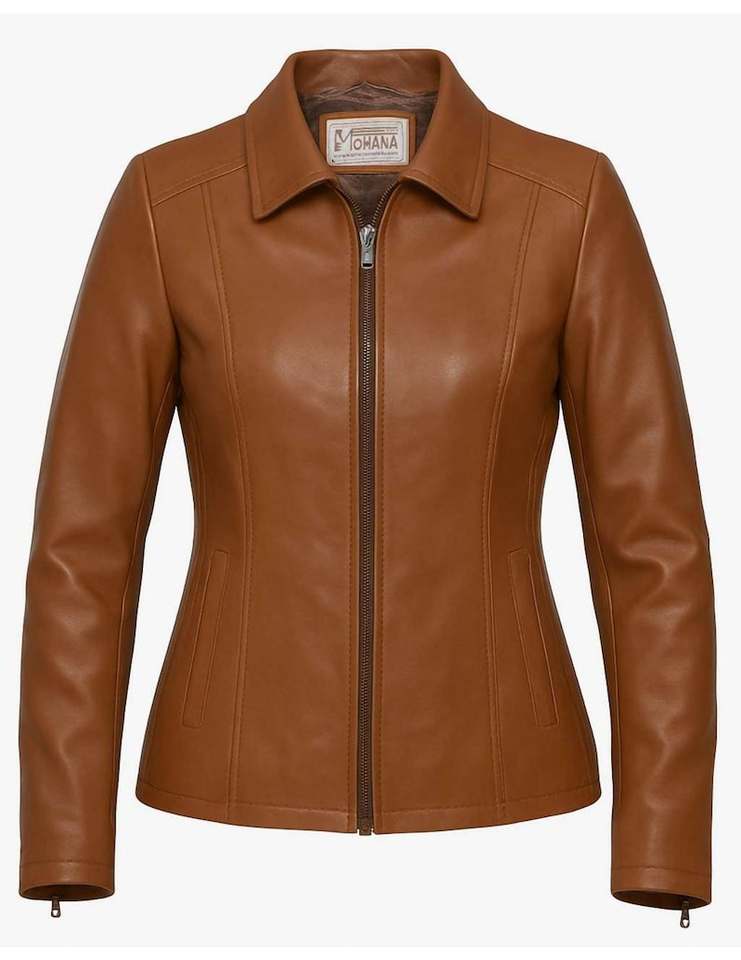 แจ็คเก็ตหนังสีน้ำตาลผู้หญิงแจ็คเก็ตหนัง Nappa แกะล้างแจ็คเก็ตหนัง Nappa สีน้ำตาล