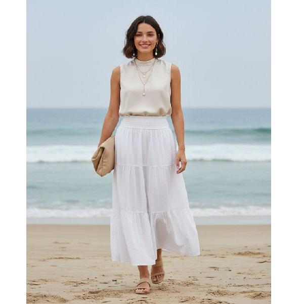 กระโปรงผ้าแคมบริคสำหรับผู้หญิง ดีไซน์หรูหรา นุ่ม เบาสบาย ระบายอากาศได้ดี เหมาะสำหรับทำงาน ท่องเที่ยว และสวมใส่ในชีวิตประจำวัน