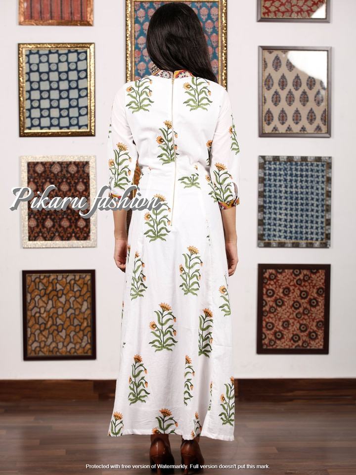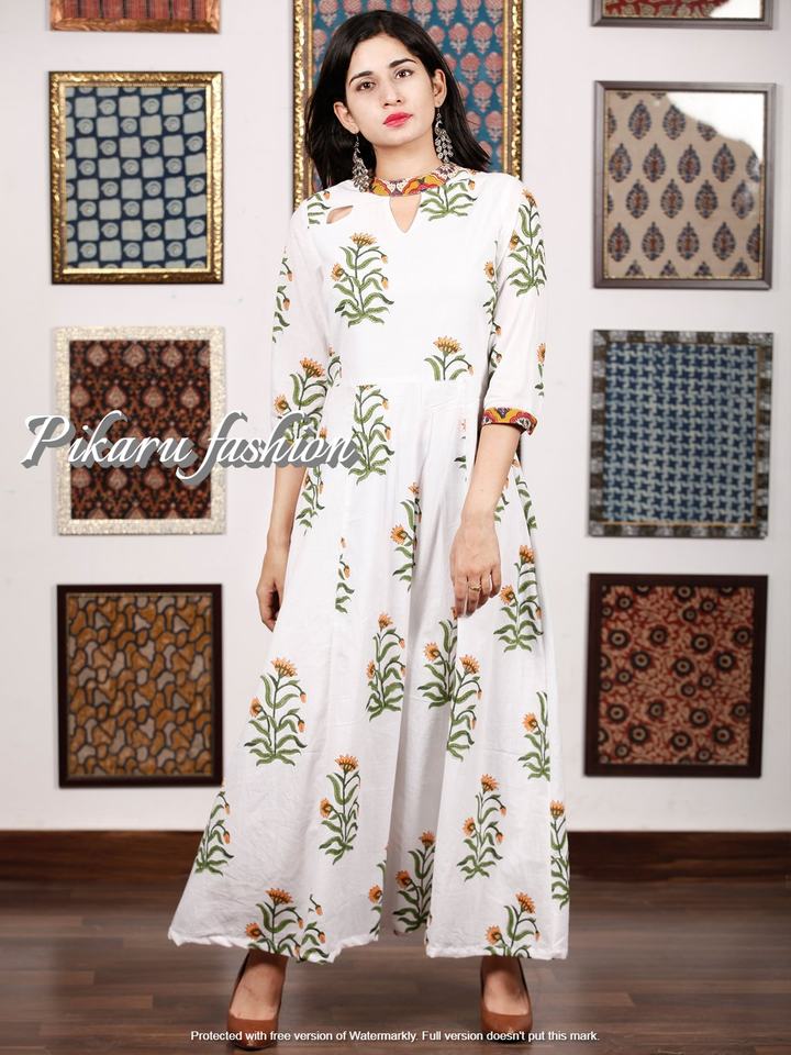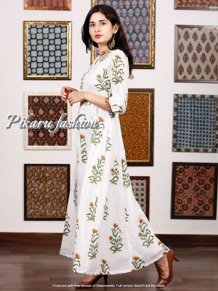 Ladies Casual Cotton Floor-Length Natural Waistline Woven Fabric Indian Designer Dress Three Quarter Sleeves Women Wear