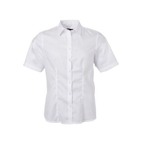 Ladies' Classic Satin Shirt Top with Embroidery XL Size Easy-Care Cotton Micro-Twill Shortsleeve"