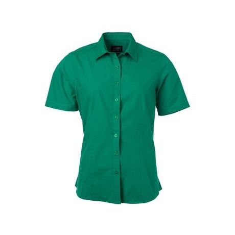 Ladies' Classic Short Sleeve Poplin Shirt Loose-Fitting Easy-Care Blended Fabric for Office or Party-XL Size