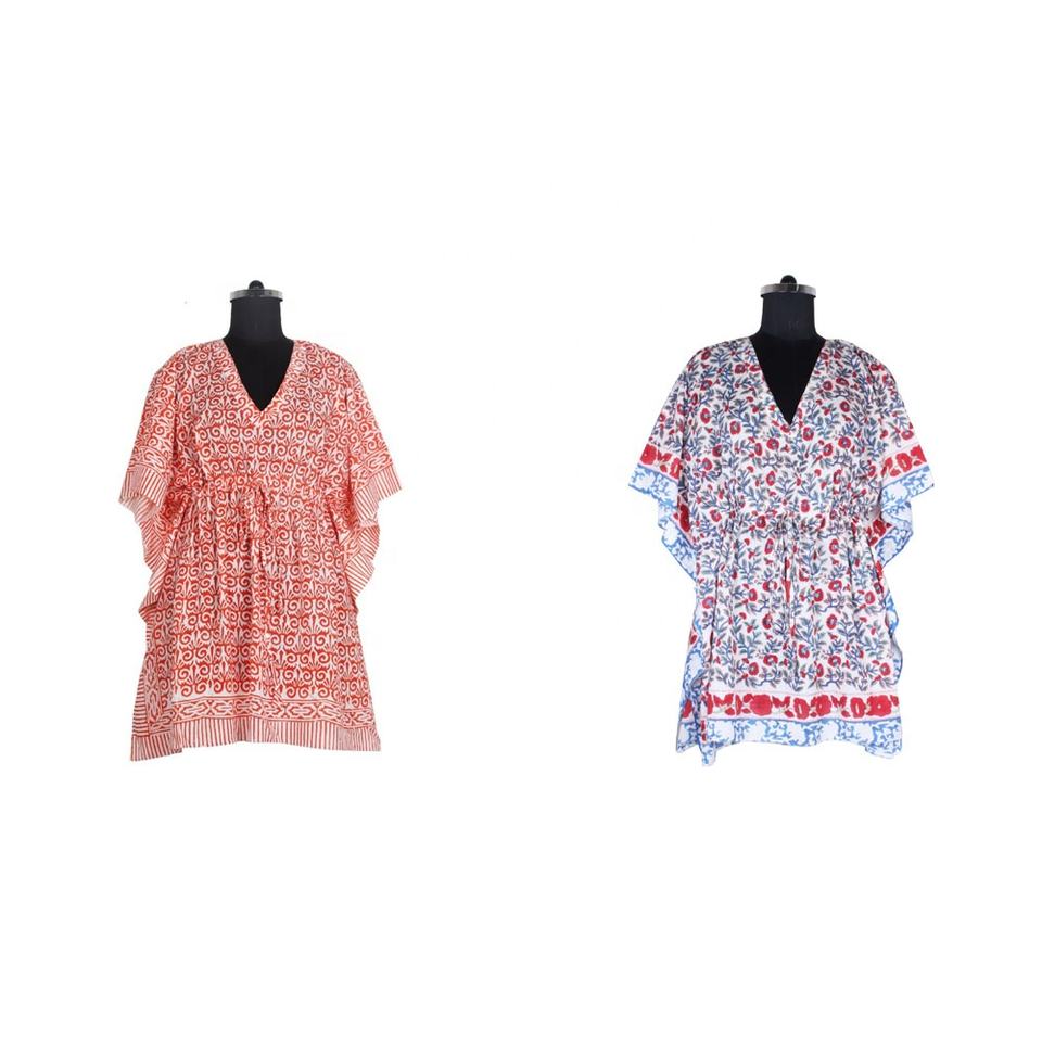ชุดเดรสคาฟตันสั้นผ้าฝ้ายสำหรับผู้หญิงชุดเดรสแขนสั้นพิมพ์ลายบล็อกเสื้อผ้าแฟชั่นสำหรับผู้หญิงชุดเดรสราคาพิเศษ