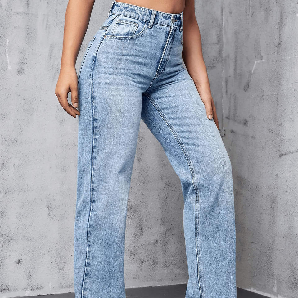 กางเกงยีนส์เดนิมทรงตรงสำหรับผู้หญิง สวมใส่สบายๆ ในชีวิตประจำวัน และสำหรับขายปลีก