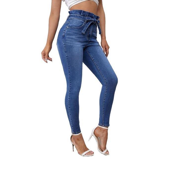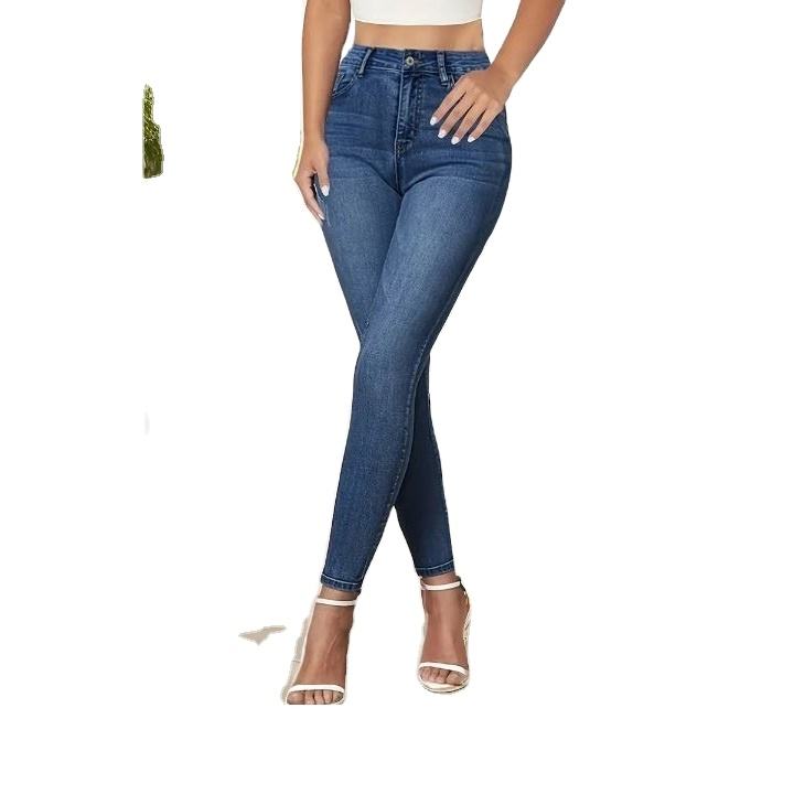 กางเกงยีนส์ยืดตรงเอวสูงลำลองของผู้หญิงสีทึบความยาวเต็มรูปแบบเป็นมิตรกับสิ่งแวดล้อม