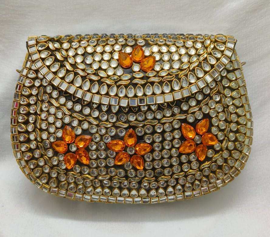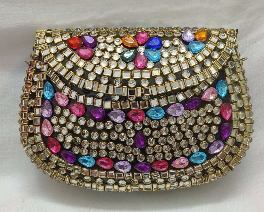 Ladies Evening Clutch Bags Mother of Pearl Metal Clutch Mosaic and kundan Bag Indian Bag Multicolor from india