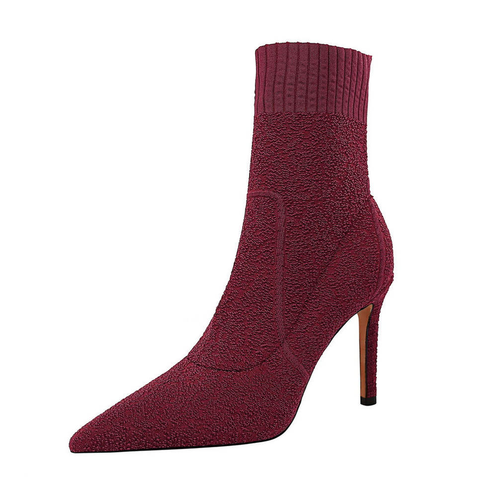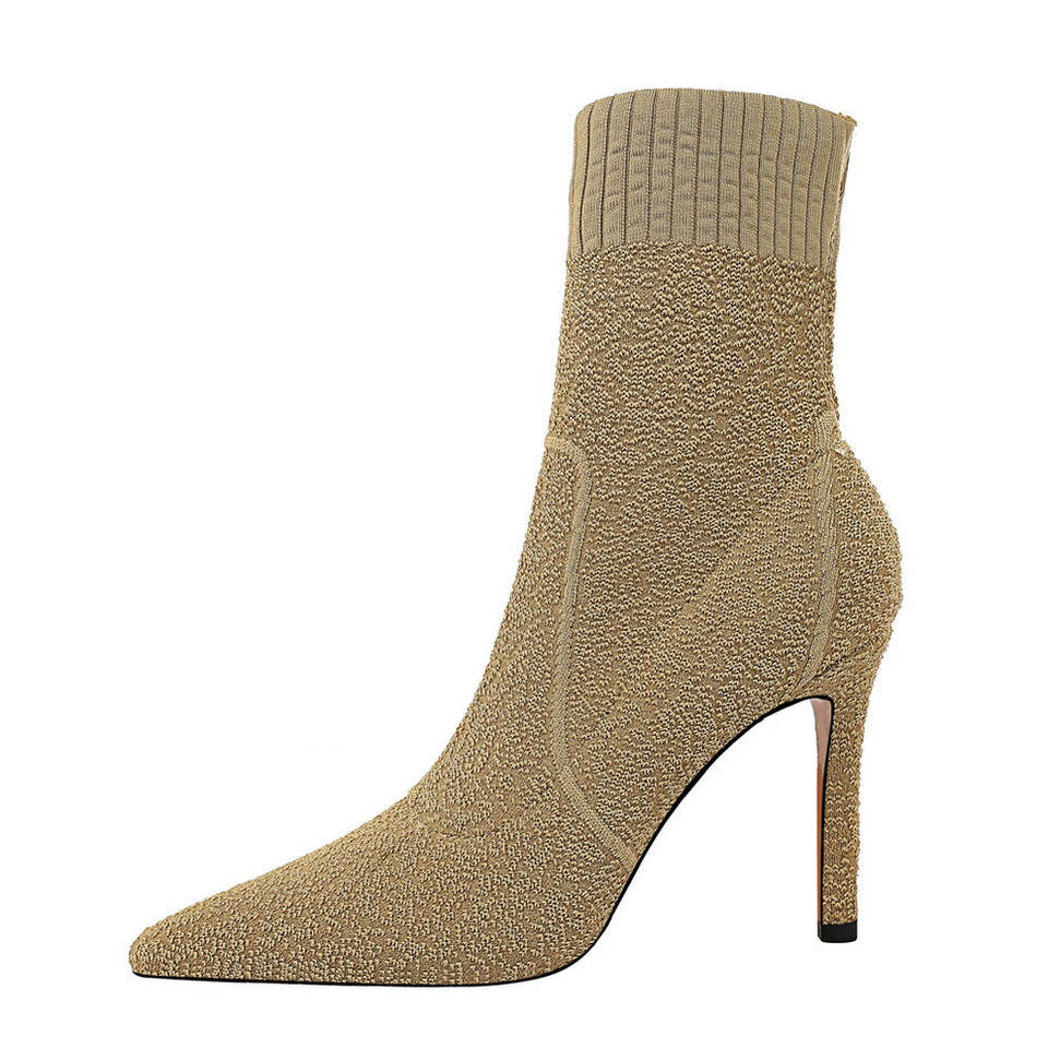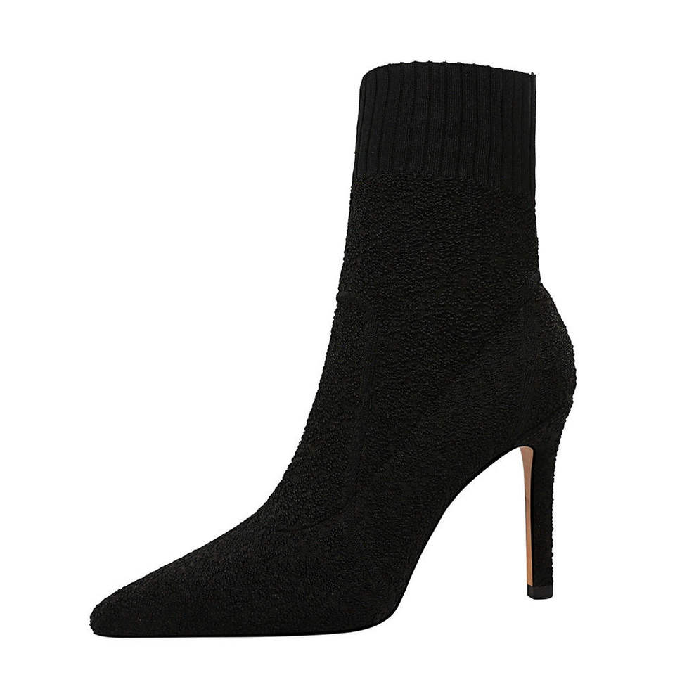 รองเท้าบูทส้นสูงทรงสติลเลตโต้แบบยืดหยุ่นสำหรับผู้หญิง แฟชั่นฤดูใบไม้ร่วง/ฤดูหนาว ปลายแหลม ลายเรียบ