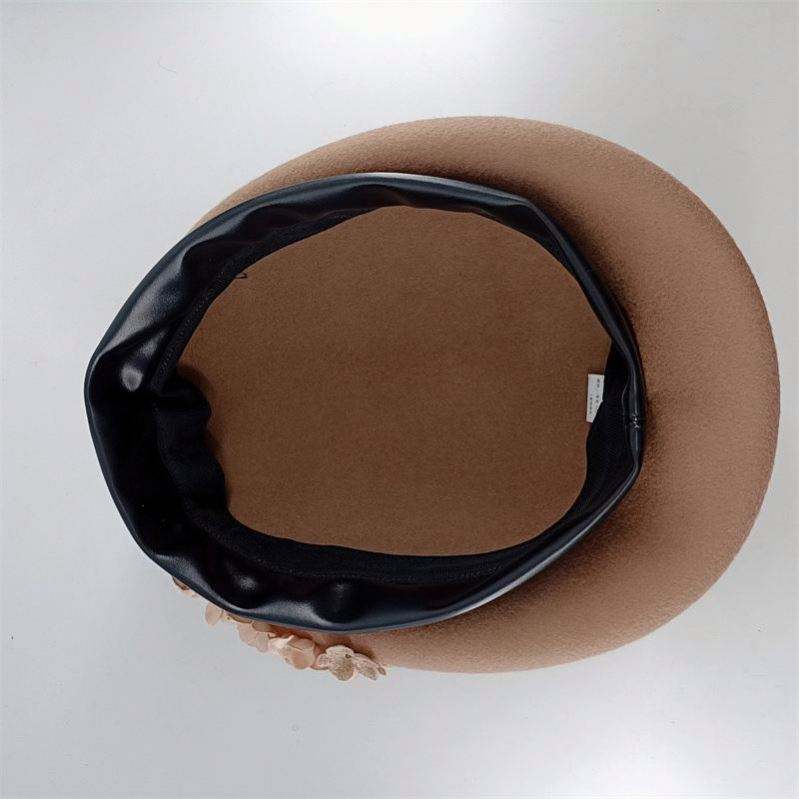หมวกเบเร่ต์แฟชั่นผู้หญิงสำหรับฤดูใบไม้ร่วงและฤดูหนาว พิมพ์ลายสกรีน พร้อมดอกไม้ประดับสักหลาด เหมาะสำหรับงานโปรโมชั่น