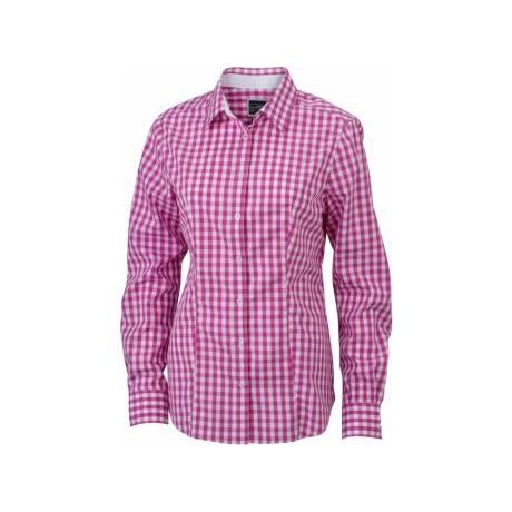Ladies' Fashionable Plaid Check Shirt Korean Style Blouse with Solid Inserts Embroidered Collar and Cuff XS-XL Sizes Available