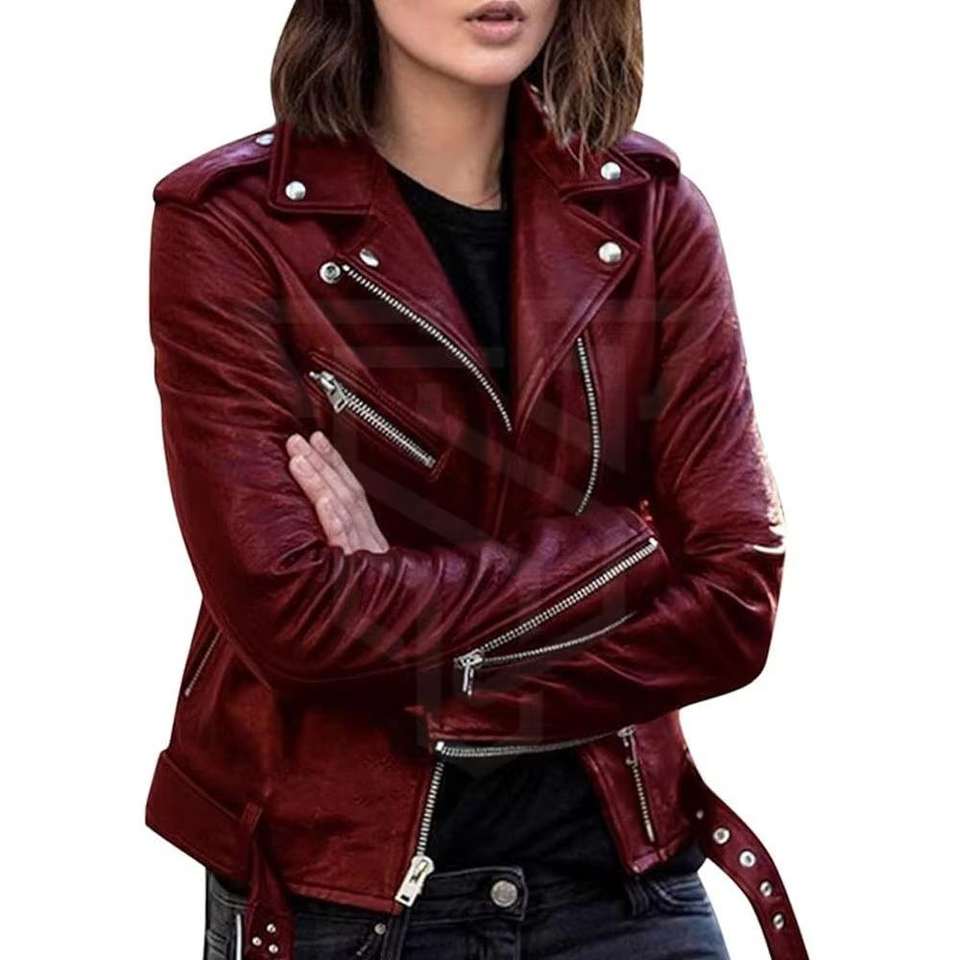 Ladies Faux Leather Jacket with Zipper Design Ruffle Waist Short Style for Fall and Winter Wear and Genuine Leather Options