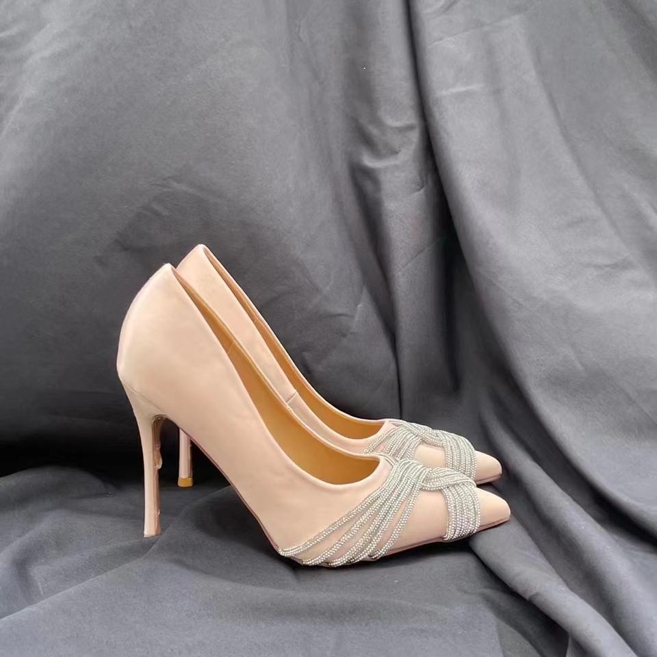 รองเท้าส้นสูงลายดอกไม้ผ้าซาตินสำหรับผู้หญิง ส้นสูง 5-8 ซม. รองเท้าฤดูร้อน ระบายอากาศได้ดี กันลื่น บริการ OEM/ODM หลายสี หลายขนาด 35-42