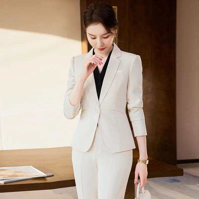 Ladies Formal OL Styles Business Suits Pants Jackets Coat Spring Autumn Professional Career Set-Office Work Wear Blazers Button
