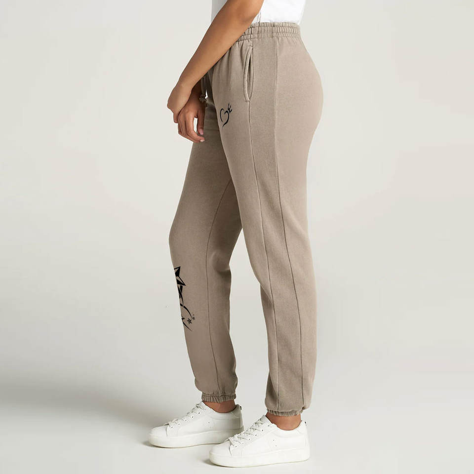 กางเกงวอร์มผู้หญิงผ้าฟลีซจ็อกเกอร์, กางเกงออกกำลังกายเอวสูงผ้าฝ้ายมีกระเป๋า