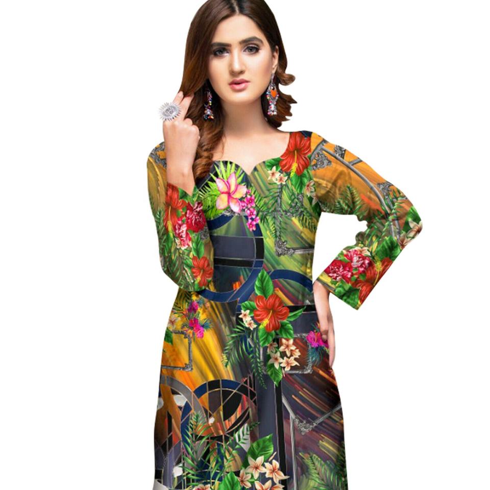 ชุดเดรสพิมพ์ลายดิจิทัลทำจากผ้าฝ้ายพิมพ์ลาย kurta จากผ้าไหมเรยอนสำหรับผู้ใหญ่