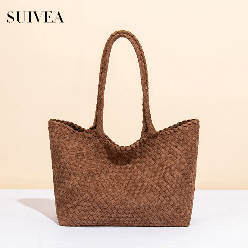 กระเป๋าโท้ทขนาดใหญ่สำหรับผู้หญิง กระเป๋าถือทอมือลายทอ กระเป๋าสะพายไหล่เดินทางสไตล์มินิมอลทันสมัย ชุดกระเป๋าแม่ลูก