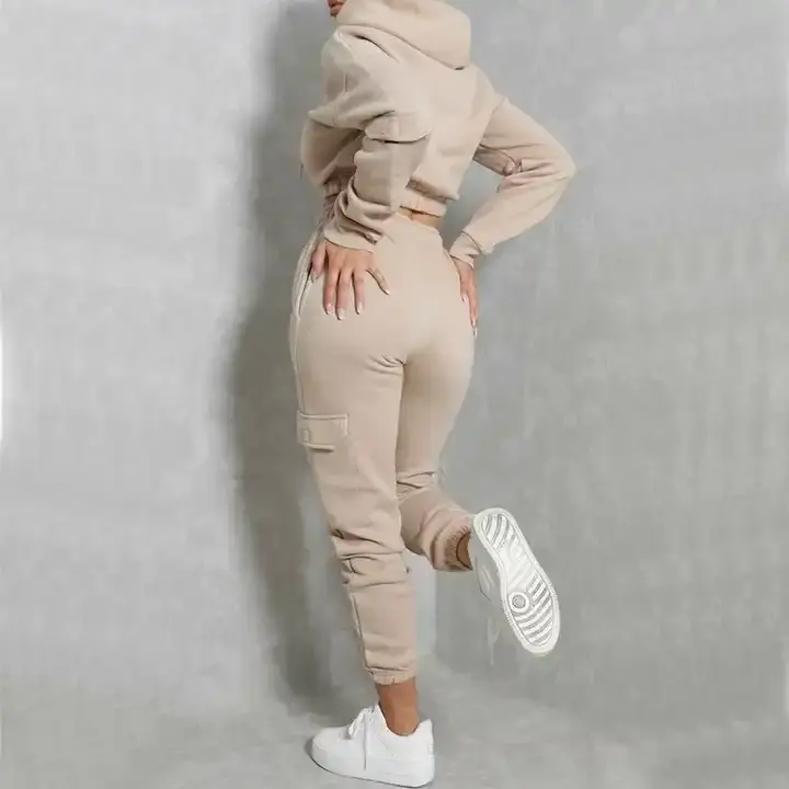 Ladies Light-Weight Cotton Cargo Pants Elastic Waist Closure Flat Flap Pocket-Winter Warm Baggy Gym Leggings Logo Customization
