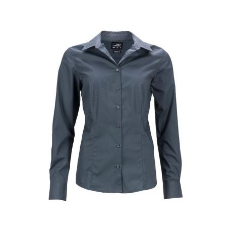 Ladies' Long-Sleeved Business Shirt Classic Striped Design Embroidered Logo Durable Blended Silk Fabric Loose Fit-XL Available
