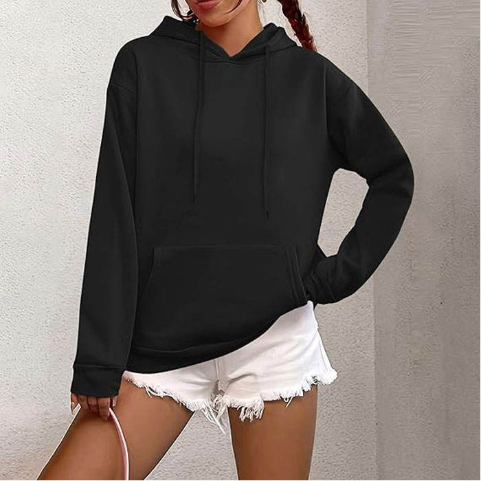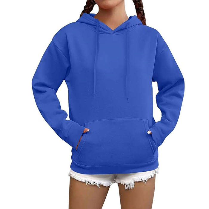 เสื้อฮู้ดแขนยาวทรงหลวมสบายๆ สำหรับผู้หญิง มีกระเป๋าแบบมีเชือกผูก ผลิตจากผ้าฝ้ายฟลีซ 100% เป็นมิตรต่อสิ่งแวดล้อม