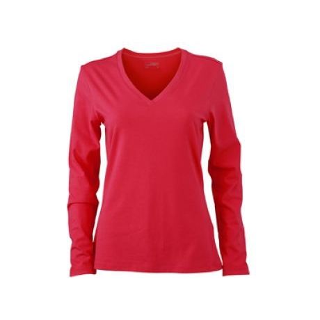 Ladies' Long-Sleeved Stretch V-Shirt Soft Elastic Single Jersey Leopard Print Silk Embroidered Logo Size XL-for Office Wear