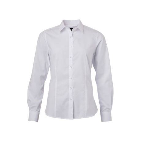 Ladies' Longsleeved Poplin Shirt Classic Striped Solid Pattern Embroidered Logo Easy-Care Blended Silk Knitted Available XS XL