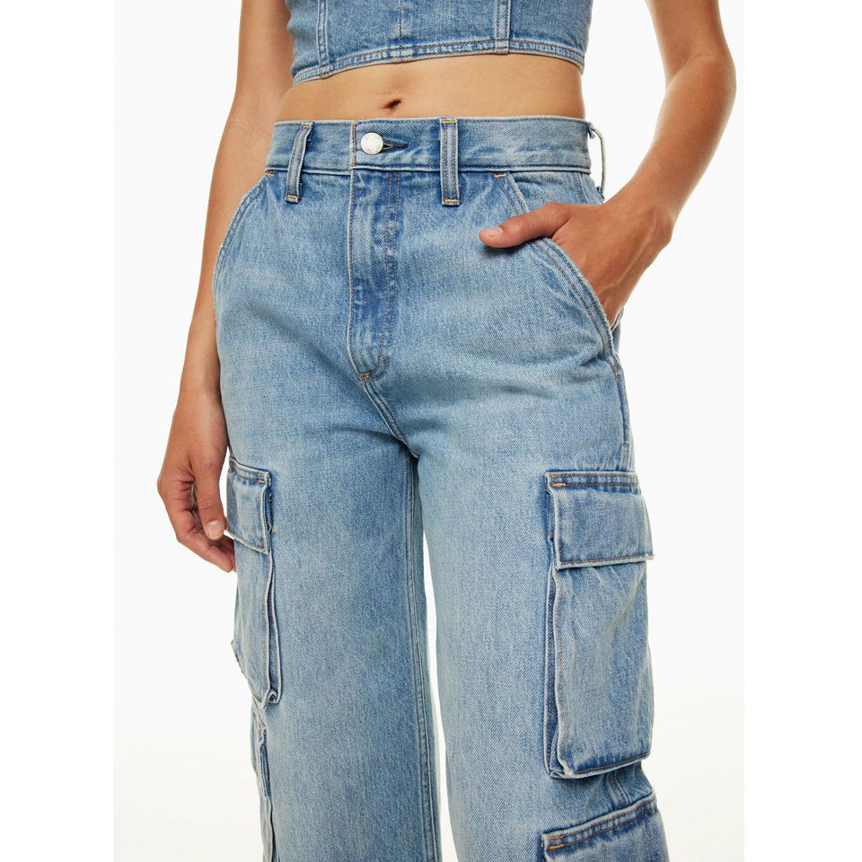 กางเกงยีนส์คาร์โก้สตรีทแวร์สุดหรูสำหรับผู้หญิง 8 กระเป๋า สไตล์ลำลอง ทรงหลวม แฟชั่น กางเกงขาบาน OEM ระบายอากาศได้ดี สีพื้น