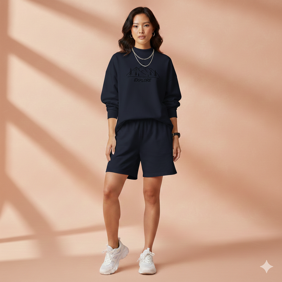 เสื้อคอเต่าผู้หญิงพร้อมกางเกงขาสั้นเข้าชุด ชุดลำลองทันสมัย ผ้าถักน้ำหนักปานกลาง ชุดฤดูร้อน