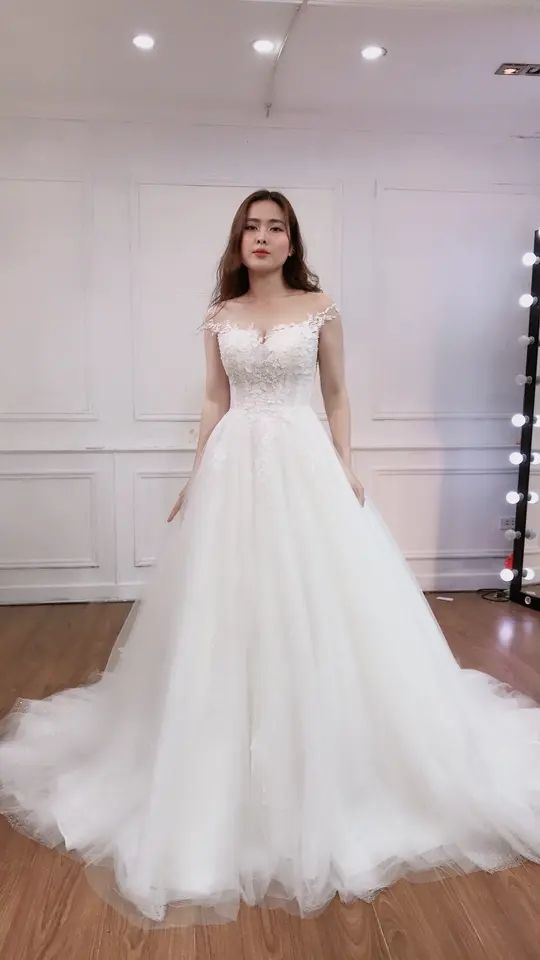 ชุดแต่งงานเปิดไหล่ของผู้หญิงชุดกระโปรงหรูหราแบบพันผ้า TNBPno48งานแต่งงานขายส่ง