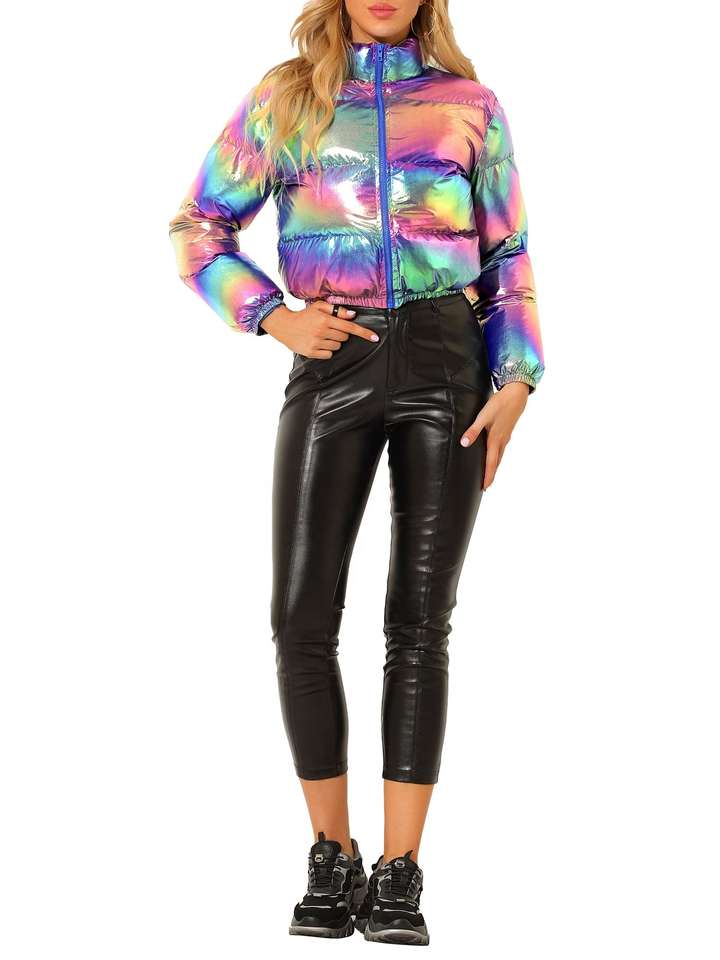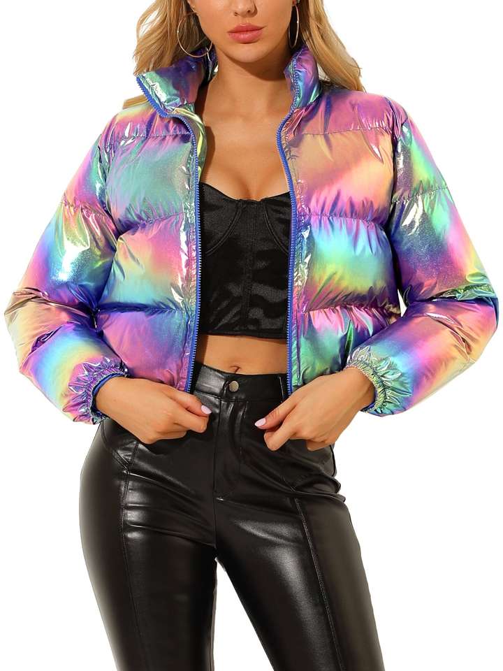 แจ็กเก็ตขนเป็ดสำหรับผู้หญิง-เสื้อกันลมกันหนาวบุนวมและคอปกตั้งซิปดีไซน์ครอปน้ำหนักเบา & อบอุ่น