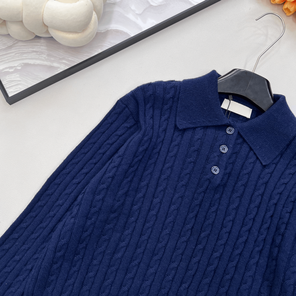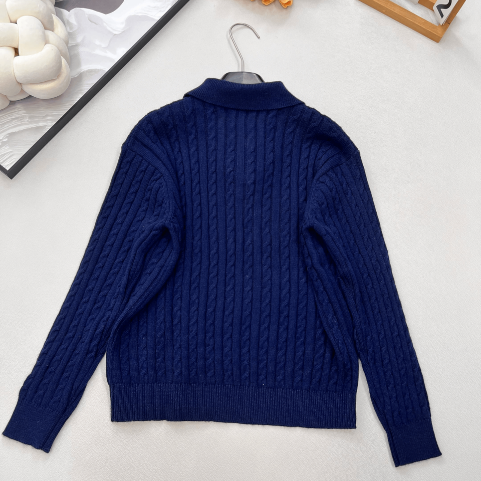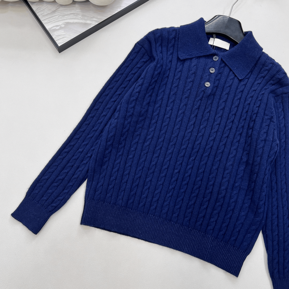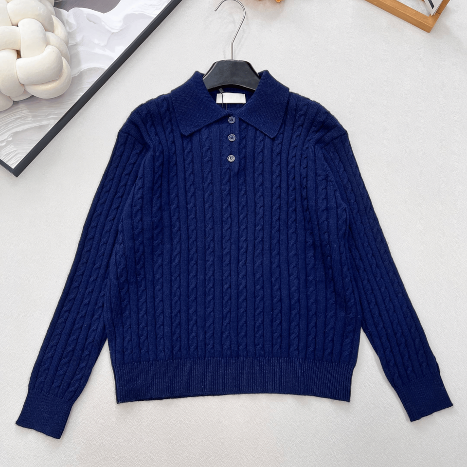 เสื้อสเวตเตอร์ถักลายเคเบิ้ลคอริบสำหรับผู้หญิง แขนยาว สวมใส่สบายๆ ทุกวัน
