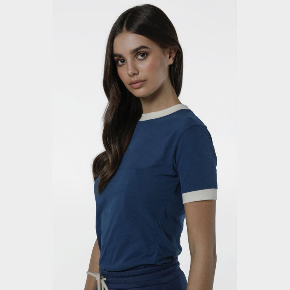เสื้อยืดคอกลมผู้หญิง ผ้าฝ้ายผสมอีลาสเทน ทรงเข้ารูป แขนสั้น สำหรับออกกำลังกาย คุณภาพสูง ผลิตสำหรับผู้ซื้อจำนวนมาก